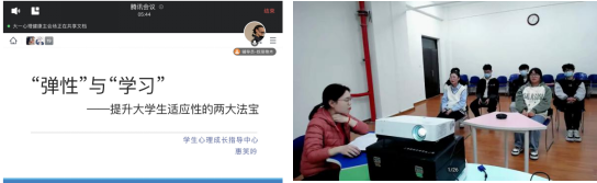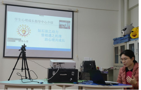 讲座开始之前,惠笑吟老师向同学们介绍了学生心理成长指导中心通过“油缘心理”微信公众号、网站等线上平台向全校师生进行心理疏导、提供线上咨询服务等情况。