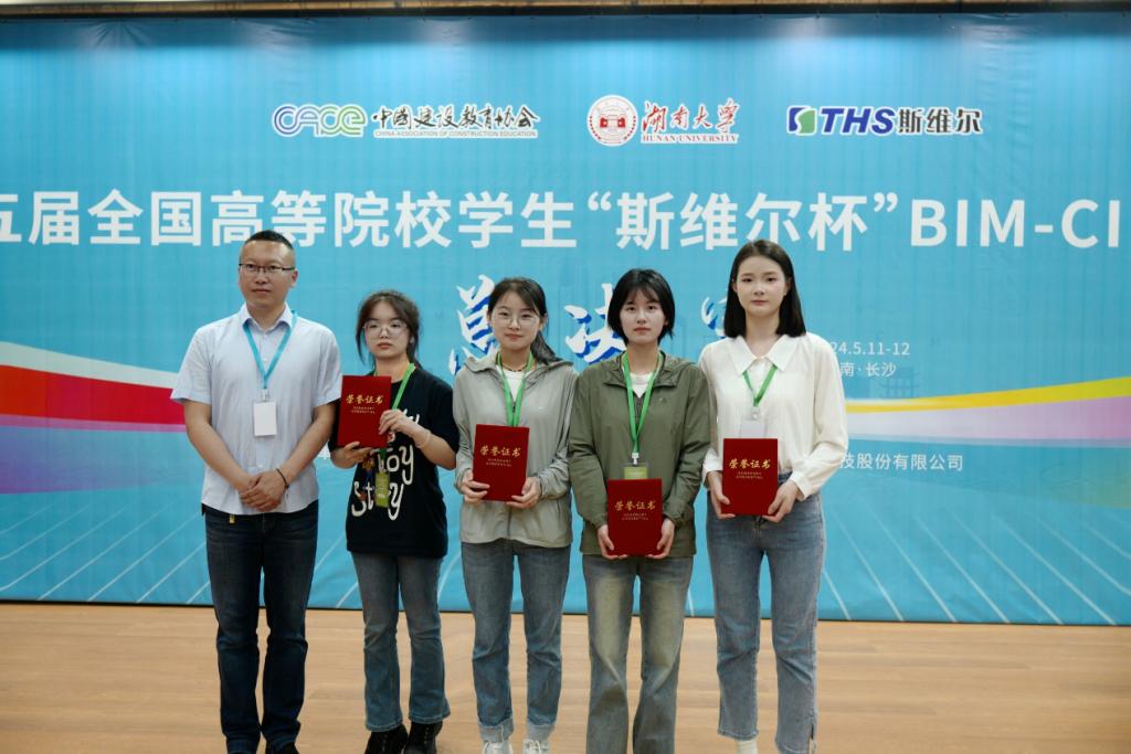 参赛学生张思晗、张婉琦、王雨欣、文璐璐(2021级工程管理专业)在尹志国、牛波老师的指导下荣获本科组“数字建造与管理BIM应用”赛道团队一等奖,刷新了我院在此项比赛的最好成绩。
