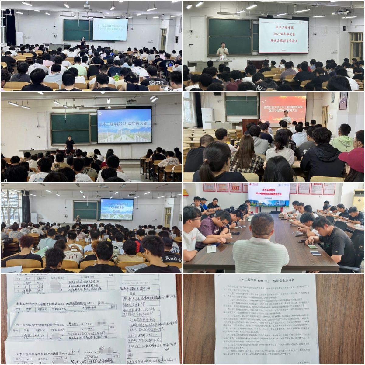 2024年十一假期安全承诺书》,并对同学们的假期去向做了详细统计。