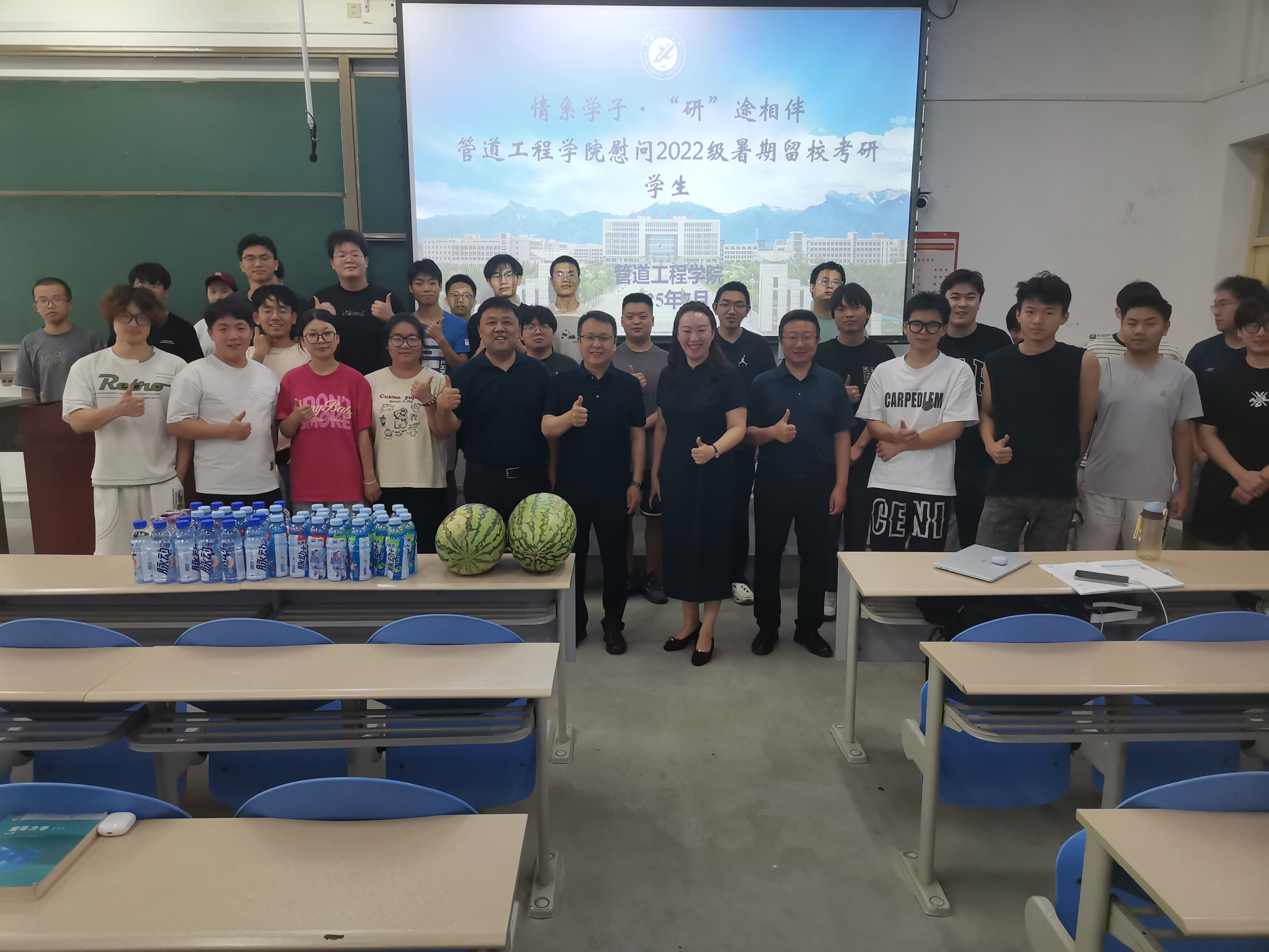 对同学们暑期不畏酷暑、坚持学习的拼搏精神表示充分肯定。她指出,作为石油高校的学生,肩负着为国家能源事业输送人才的使命,考研是提升自身专业素养、拓宽未来职业发展路径的重要途径,希望同学们能够珍惜时光、科学规划、争取“一战上岸”。