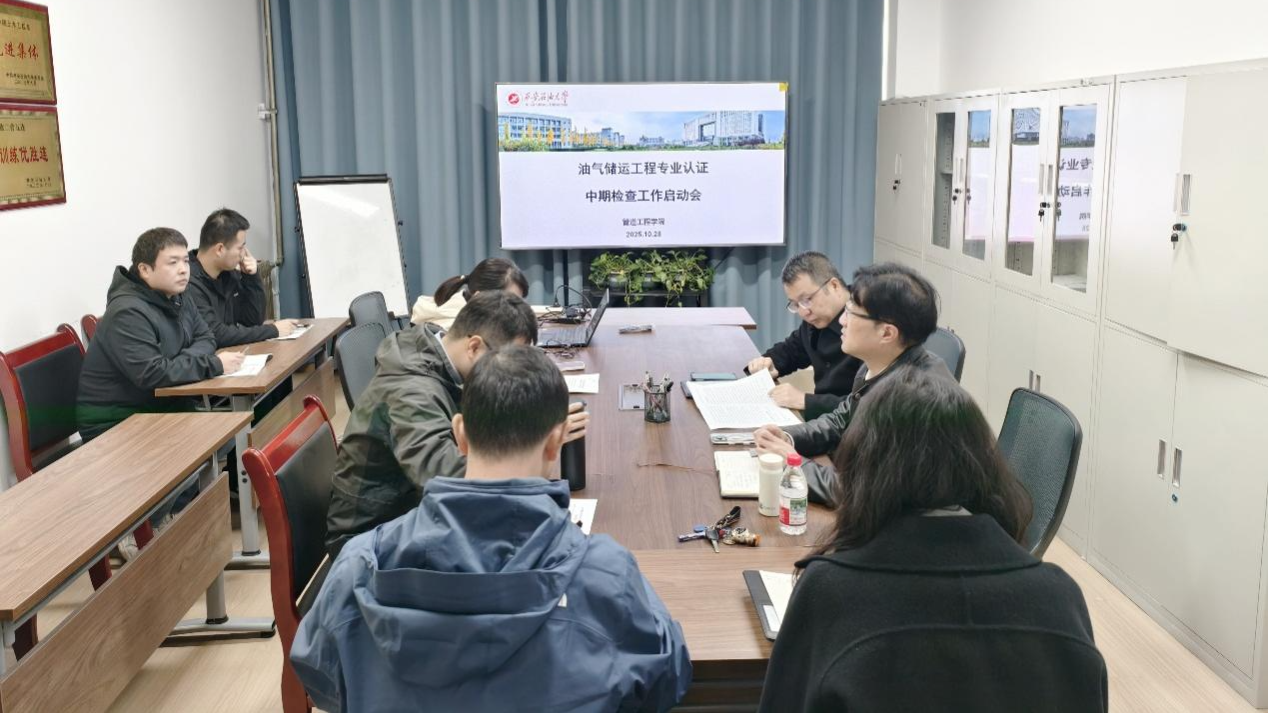 为扎实推进专业内涵建设,全面提升本科教育教学质量,确保油气储运工程专业认证工作有序推进,2025 年 10 月 28 日上午,斗牛棋牌官网 在雁塔校区东方石油楼 1105 室召开油气储运专业认证中期检查工作启动会。斗牛棋牌 院长蒋华义、油气储运工程系主任潘杰、副主任徐士祺、党支部书记王勇、骨干教师及教学办主任李晶参加会议,会议由副院长崔莹主持。
