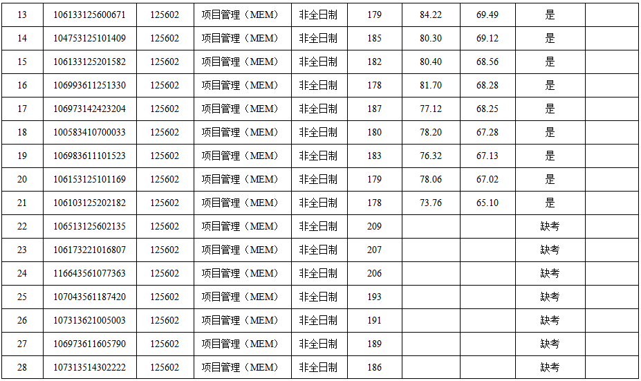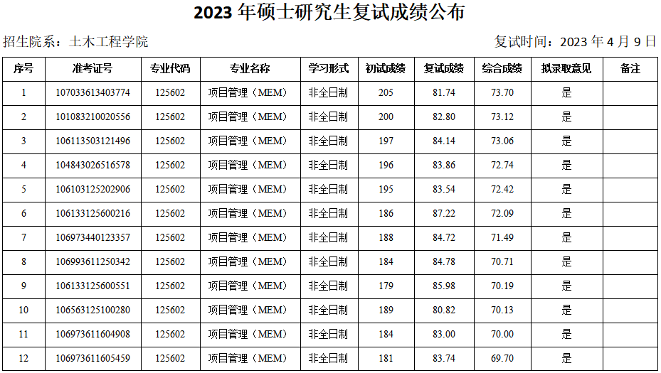 2023年硕士研究生复试成绩(调剂第二批—项目管理(MEM))予以公布。如有异议,可通过以下方式反映。