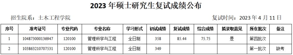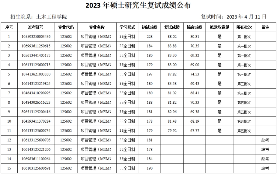 2023年硕士研究生复试成绩(调剂第三批—管理科学与工程、项目管理(MEM))予以公布。如有异议,可通过以下方式反映。