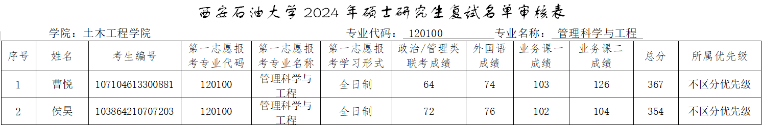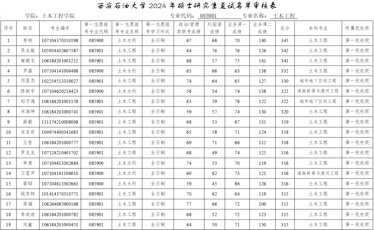 参加复试考生名单(调剂第一批)予以公布,请各位考生按照要求准时参加。如考生对复试名单有异议,请与我院办公室联系。