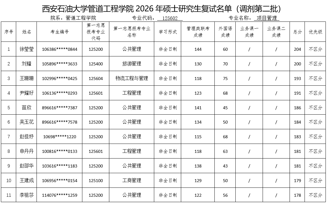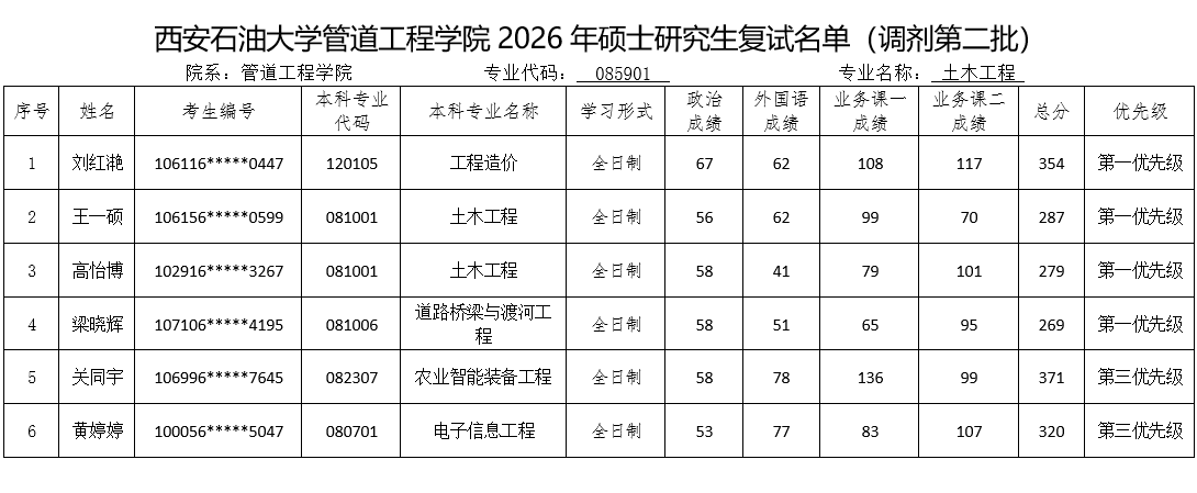 参加复试考生名单(调剂第二批)予以公布,请各位考生按照要求准时参加复试。如考生对复试名单有异议,请与我院办公室联系。