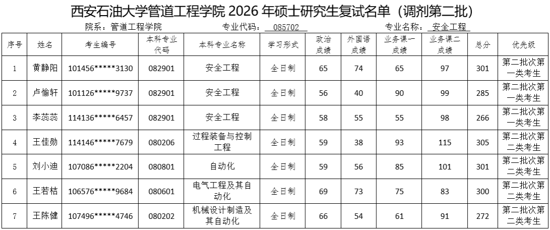 参加复试考生名单(调剂第二批)予以公布,请各位考生按照要求准时参加复试。如考生对复试名单有异议,请与我院办公室联系。